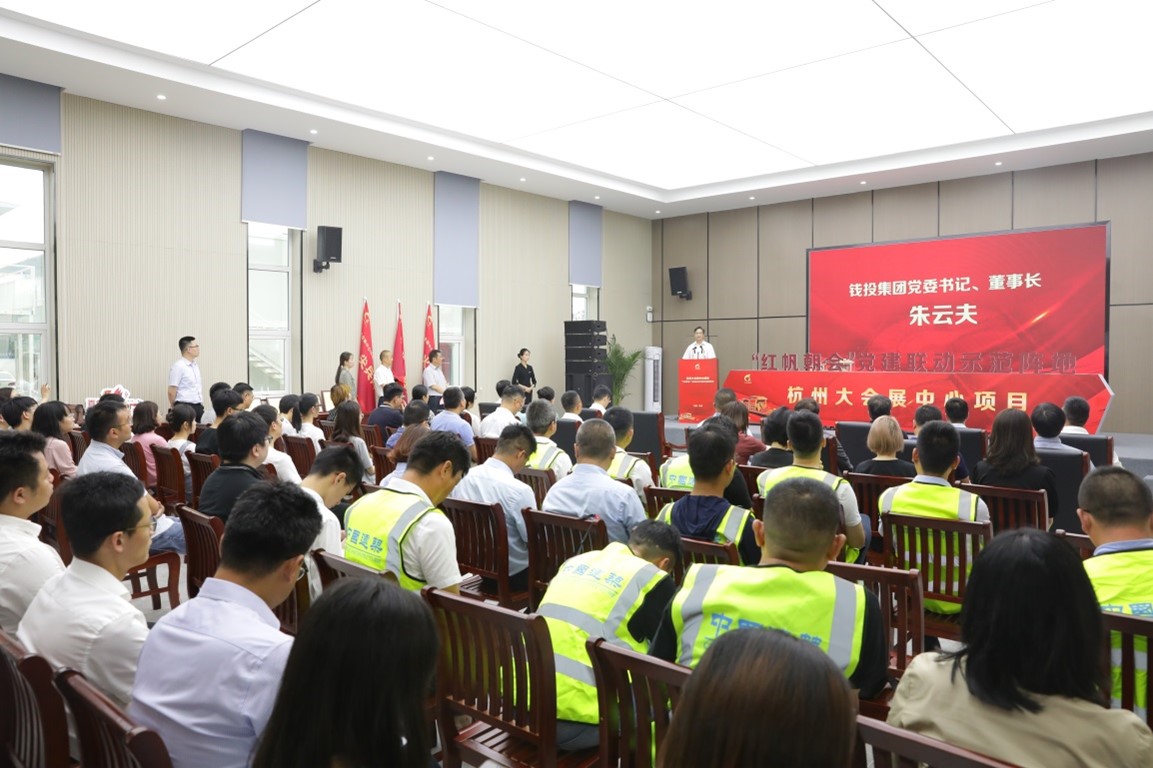 6月18日上午,“杭州大會展中心項目現(xiàn)場聯(lián)合臨時黨委成立暨‘紅帆朝會’黨建聯(lián)動示范陣地”揭牌儀式,在杭州大會展中心項目(下稱“項目”)指揮部舉行。公司建筑設(shè)計院與法國VP建筑設(shè)計事務(wù)所相關(guān)人員及代表參加此次活動。
