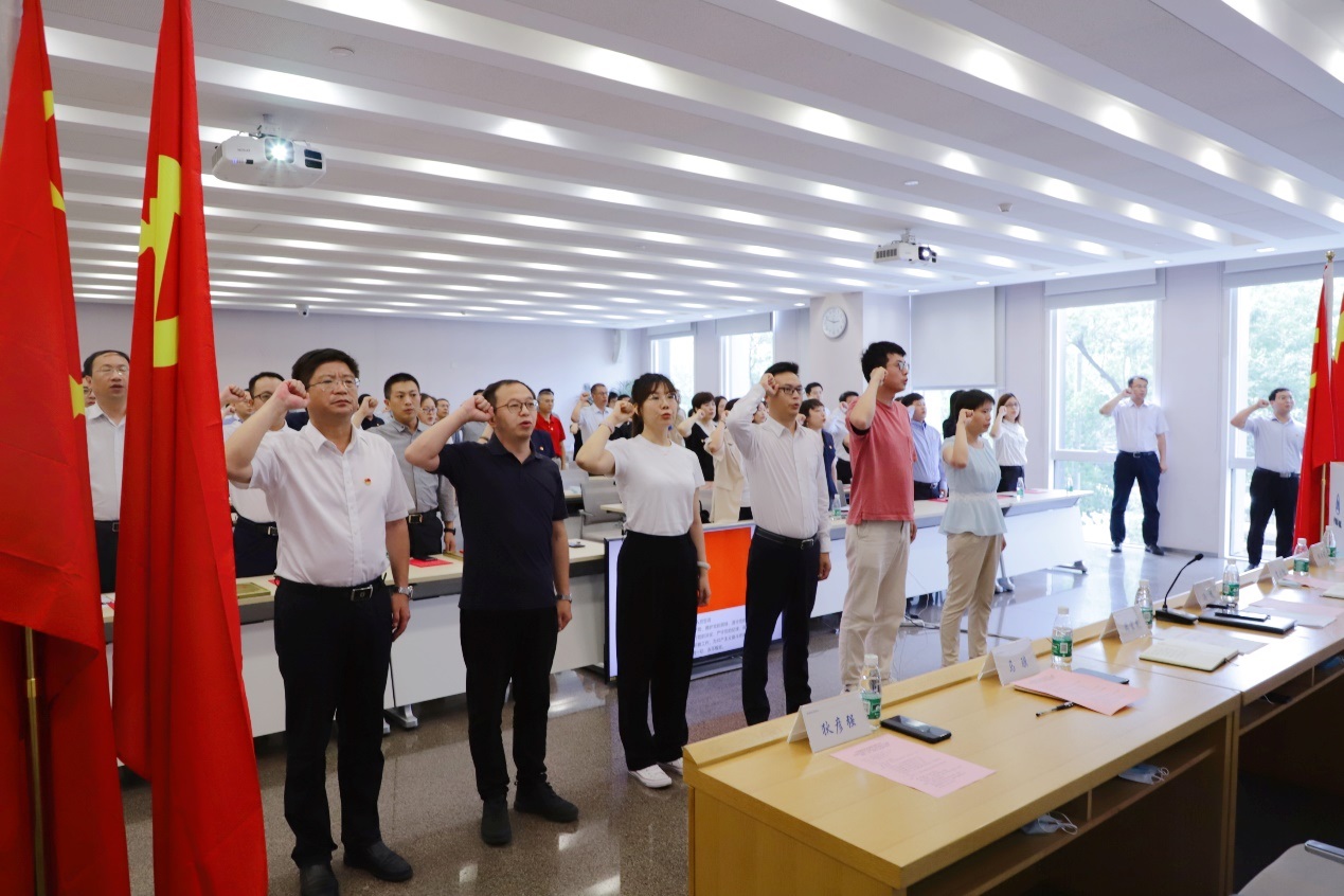 會(huì)上,新黨員代表面對鮮紅的黨旗進(jìn)行入黨宣誓,其他與會(huì)黨員重溫入黨誓詞。