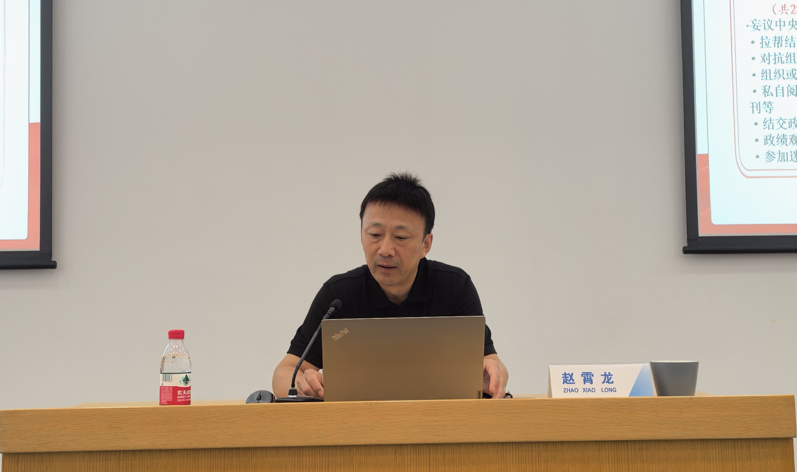 趙霄龍以《常照黨紀(jì)之“鏡” 勤修守紀(jì)之“道”》為題,結(jié)合檢測中心改革發(fā)展實(shí)際,從中國共產(chǎn)黨百年紀(jì)律建設(shè)的歷程,《條例》修訂的主要內(nèi)容及其鮮明特征,認(rèn)真抓好《條例》的貫徹執(zhí)行三個(gè)方面,帶領(lǐng)黨員干部深入學(xué)習(xí)了《條例》,號(hào)召黨員干部以黨的紀(jì)律為戒尺,自覺遵守政治原則和政治紀(jì)律,增強(qiáng)組織意識(shí)、紀(jì)律意識(shí),堅(jiān)持按制度來、按程序走、按規(guī)矩辦。