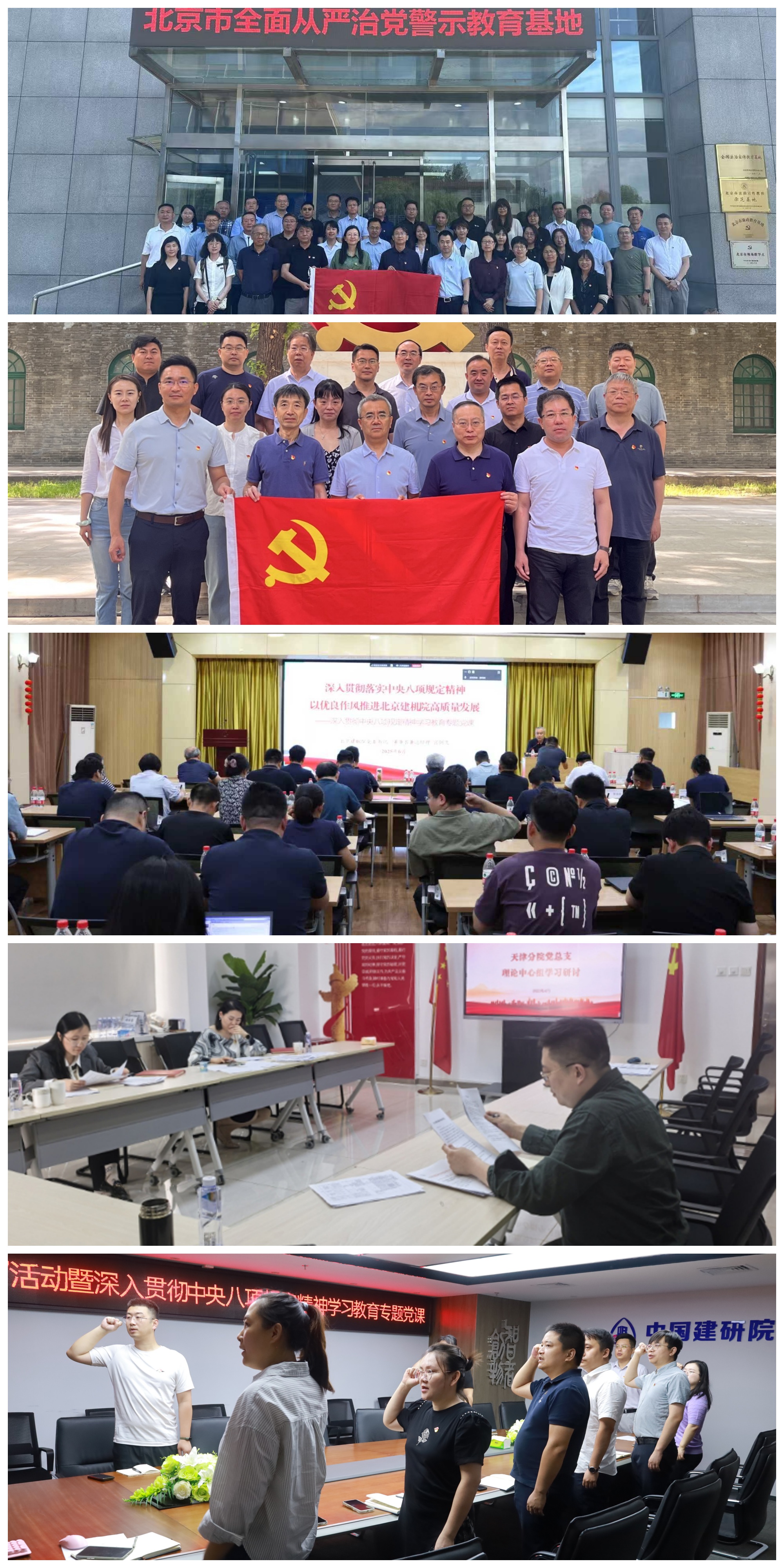 中建研科技黨委聯(lián)合紀(jì)委開展“警鐘長鳴守初心 廉潔擔(dān)當(dāng)踐使命”活動,組織黨員干部赴八寶山革命公墓黨員干部政德教育基地、北京市全面從嚴(yán)治黨警示教育基地開展警示教育,引導(dǎo)黨員干部強(qiáng)化思想認(rèn)識,增強(qiáng)拒腐防變能力。建研地基黨委將中央八項(xiàng)規(guī)定及其實(shí)施細(xì)則精神作為理論學(xué)習(xí)中心組學(xué)習(xí)的“必修課”,引導(dǎo)所屬各黨支部通過“三會一課”、主題黨日等形式開展學(xué)習(xí)教育,強(qiáng)化理論武裝。北京建機(jī)院黨委領(lǐng)導(dǎo)班子成員充分發(fā)揮示范帶動作用,全面深入聯(lián)系單位、分管部門、基層黨支部等講授專題黨課,回顧黨的作風(fēng)建設(shè)的歷史脈絡(luò)與黨內(nèi)教育實(shí)踐寶貴經(jīng)驗(yàn),剖析違反中央八項(xiàng)規(guī)定精神典型問題,推動作風(fēng)建設(shè)常態(tài)化長效化。天津分院黨總支高標(biāo)準(zhǔn)高質(zhì)量開展學(xué)習(xí)教育,黨總支及所屬黨支部以“集中學(xué)習(xí)+專題研討+個(gè)人研學(xué)”的方式開展學(xué)習(xí)研討、黨課宣講、警示教育,推動學(xué)習(xí)研討向“神經(jīng)末梢”延伸。熱帶院黨支部加強(qiáng)傳達(dá)學(xué)習(xí)、統(tǒng)籌謀劃和組織領(lǐng)導(dǎo),及時(shí)學(xué)習(xí)貫徹教育有關(guān)文件精神,常態(tài)化開展黨課、主題黨日等活動,引導(dǎo)黨員干部從思想源頭上筑牢“不敢腐、不能腐、不想腐”的廉潔自律防線。