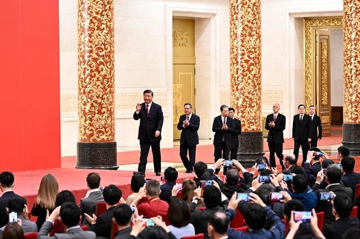 12時(shí)30分,見(jiàn)面會(huì)結(jié)束。習(xí)近平等向中外記者揮手道別。全場(chǎng)再次響起熱烈的掌聲。