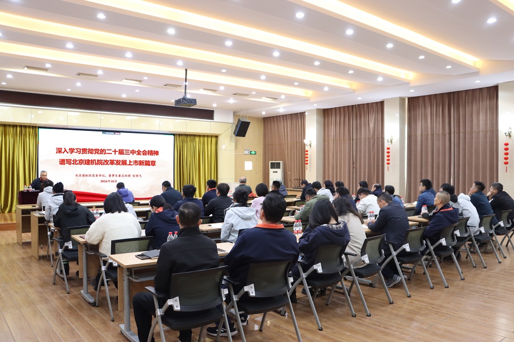宮劍飛以《深入學習貫徹黨的二十屆三中全會精神 譜寫北京建機院改革發(fā)展上市新篇章》為題,圍繞“準確把握進一步全面深化改革的指導思想”“準確把握進一步全面深化改革的重大舉措”“強化責任擔當,譜寫改革發(fā)展上市新篇章”等方面,結合北京建機院改革發(fā)展實際和下一步重點任務等作了系統(tǒng)、生動的闡釋和宣講。
