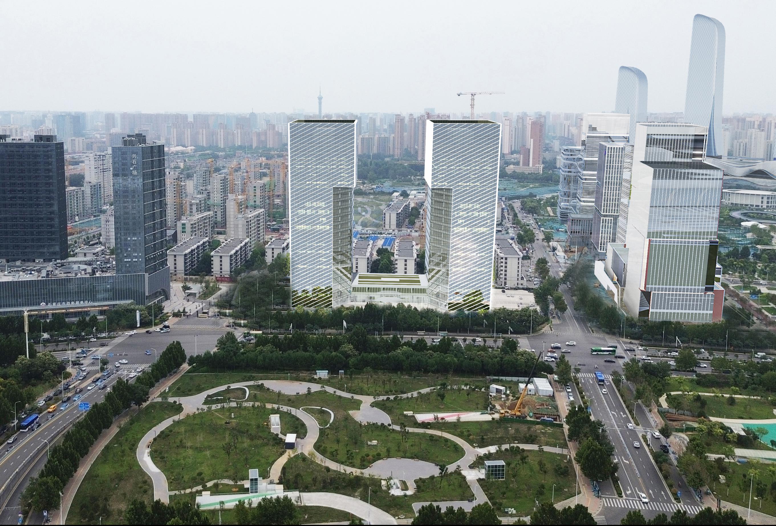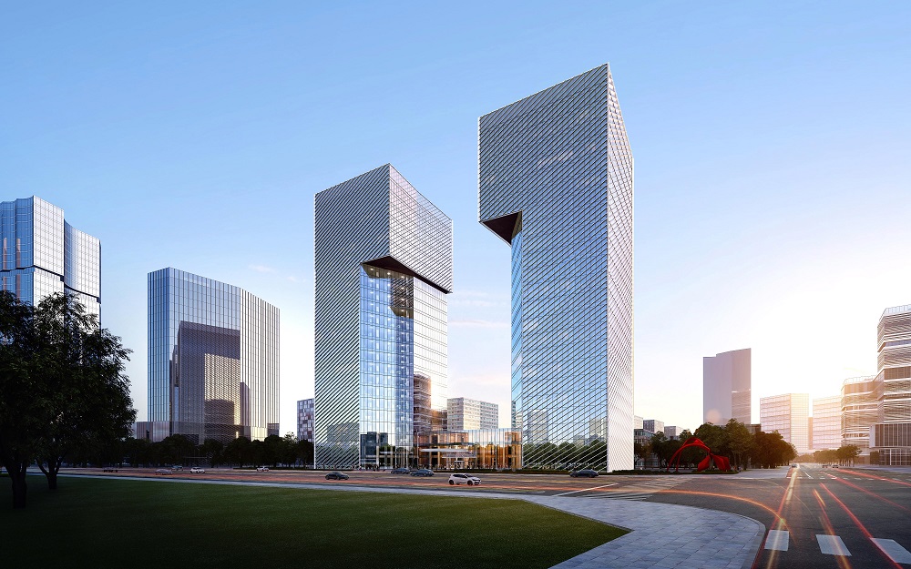 9號地塊項目緊鄰石家莊站東廣場,是步入石家莊的一道標志性景觀,彰顯了城市的重要門戶形象。以“城市之門”為設(shè)計理念,通過簡潔的形體削切,打造高品質(zhì)的金融雙塔,展現(xiàn)具有未來視野的新時代金融辦公企業(yè)總部形象。?