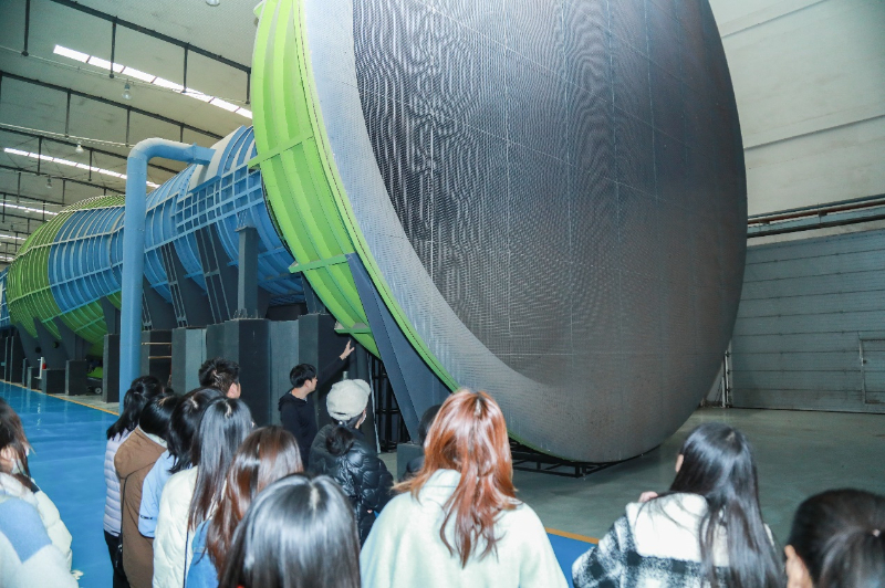進(jìn)入實(shí)驗(yàn)室,首先映入眼簾的是藍(lán)綠相間的巨大“喇叭”,也是今天的“主角”——建筑風(fēng)洞?!按孙L(fēng)洞長(zhǎng)96.5米,是直流下吹式大氣邊界層風(fēng)洞,此風(fēng)洞可以進(jìn)行多項(xiàng)科學(xué)試驗(yàn),為保證建筑的安全性和舒適性提供強(qiáng)大的‘后盾’”,薛原介紹。參觀人員來(lái)到“喇叭口”了解風(fēng)洞動(dòng)力段的運(yùn)行原理,近距離看到風(fēng)扇葉片的構(gòu)造。沿著風(fēng)洞,接著來(lái)到中間的穩(wěn)定段,參觀人員深入了解風(fēng)洞內(nèi)部蜂窩器和阻尼網(wǎng)的構(gòu)造和重要作用。經(jīng)過(guò)風(fēng)洞的兩個(gè)實(shí)驗(yàn)段,最后來(lái)到擴(kuò)張段,在這里風(fēng)可以以更低的速度被排出。在專家的講解下,風(fēng)洞每一段構(gòu)造的科學(xué)秘密被逐漸揭開,參觀人員感受到建筑安全背后“科技屏障”的力量。