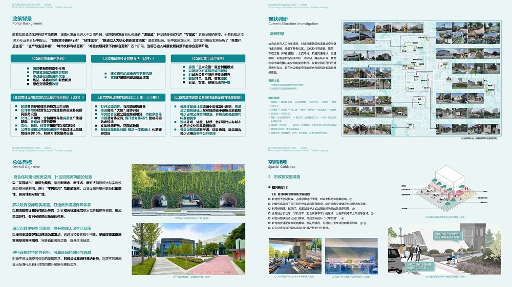 《導(dǎo)則》通過對北京市設(shè)施類空間問題梳理和案例研究,提出了對現(xiàn)有設(shè)施類空間優(yōu)化配置的更新改造,通過完善各類設(shè)施功能進(jìn)而更好地滿足人民對美好生活的需要。同時,針對城市更新中城市土地資源有限和存量空間閑置的問題,《導(dǎo)則》還著力推進(jìn)設(shè)施類空間復(fù)合利用的系統(tǒng)化和模式化,強調(diào)了設(shè)施類項目的政策實施和運營管理的方式。本課題順應(yīng)城鎮(zhèn)化發(fā)展新階段需求,尋求城市高質(zhì)量發(fā)展的新道路;創(chuàng)新探索以品質(zhì)提升效益的城市更新模式,使存量空間高效復(fù)合利用;從居民生活中實際問題出發(fā),解決設(shè)施類空間在使用中存在的問題;形成一套設(shè)施類城市更新實施范式,推動設(shè)施類空間合理規(guī)范化利用。
