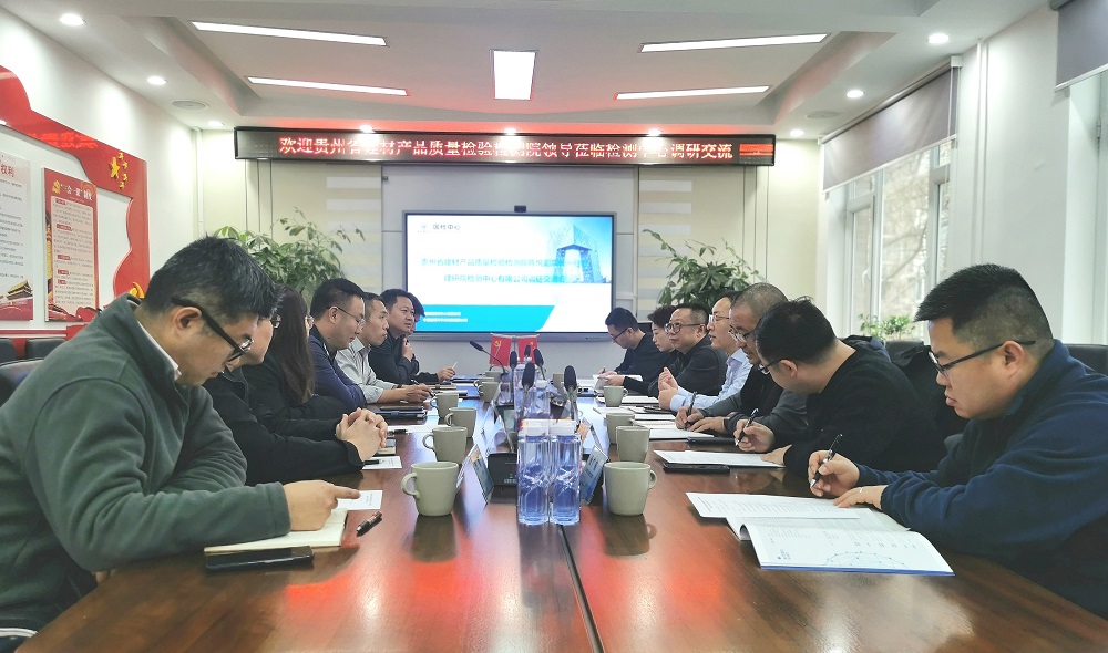 12月12日,貴州省建材產(chǎn)品質(zhì)量檢驗(yàn)檢測(cè)院(以下簡(jiǎn)稱“貴州省建材質(zhì)檢院”)副院長(zhǎng)陳悅、王小平一行到檢測(cè)中心進(jìn)行交流訪問。檢測(cè)中心黨委委員、副總經(jīng)理王景賢參加并主持座談會(huì)。