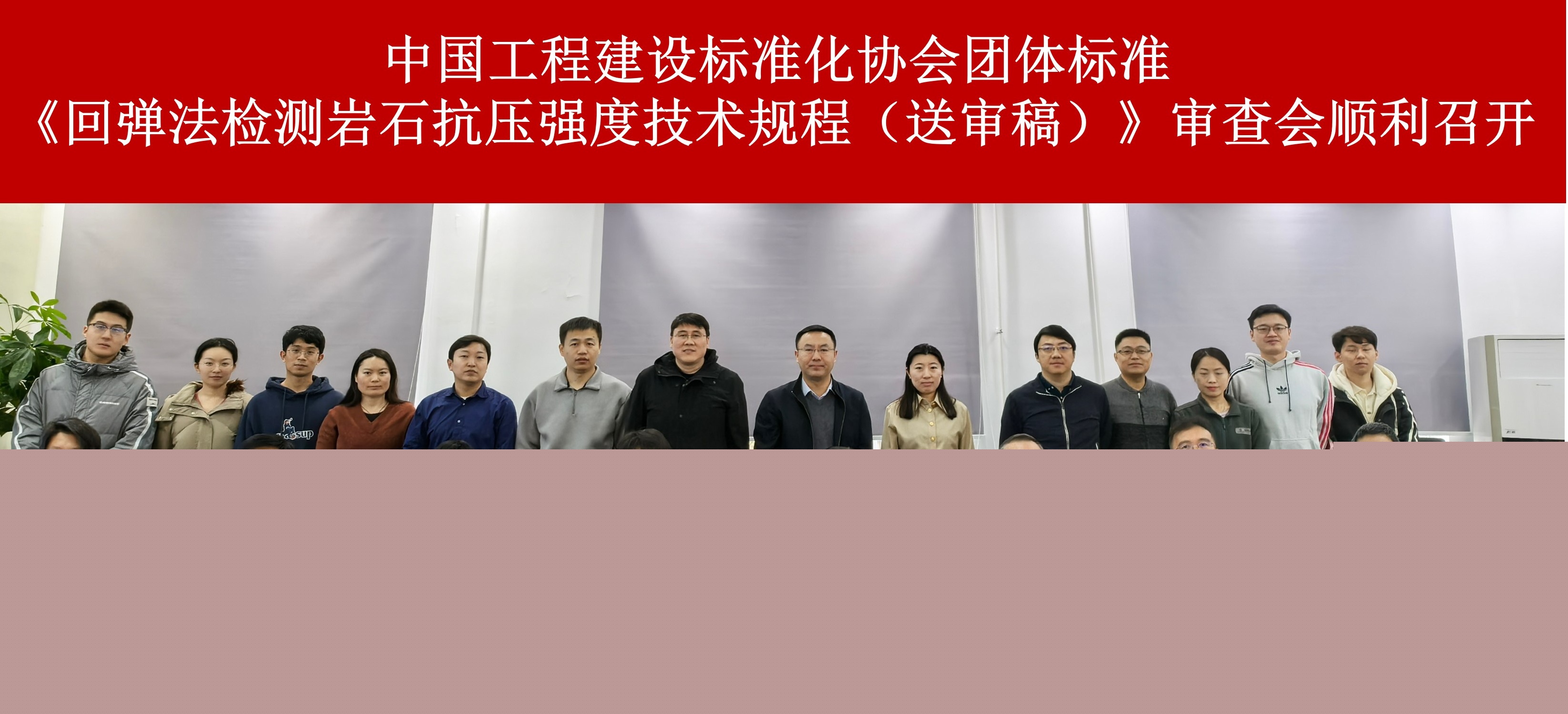 12月24日,由檢測(cè)中心牽頭,會(huì)同有關(guān)單位共同完成的團(tuán)體標(biāo)準(zhǔn)《回彈法檢測(cè)巖石抗壓強(qiáng)度技術(shù)標(biāo)準(zhǔn)(送審稿)》(以下簡(jiǎn)稱《標(biāo)準(zhǔn)》)審查會(huì)在京召開(kāi)。中國(guó)工程建設(shè)標(biāo)準(zhǔn)化協(xié)會(huì)特派專家張紅彥,中國(guó)工程建設(shè)標(biāo)準(zhǔn)化協(xié)會(huì)檢測(cè)與試驗(yàn)專業(yè)委員會(huì)秘書長(zhǎng)、檢測(cè)中心副總經(jīng)理王景賢,審查專家及來(lái)自編制單位的36位代表參加會(huì)議。