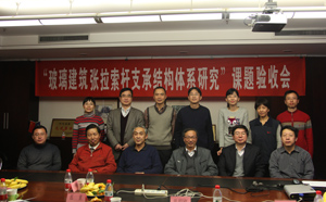 驗(yàn)收會(huì)由許桃麗副處長主持,會(huì)議成立了以北京工業(yè)大學(xué)張毅剛教授為主任委員、中國建筑設(shè)計(jì)研究院總工范重教授級(jí)高工為副主任委員的驗(yàn)收委員會(huì)。課題負(fù)責(zé)人劉軍進(jìn)研究員對(duì)研究工作進(jìn)行了全面匯報(bào)。驗(yàn)收委員會(huì)在審閱了送審材料和聽取了課題組的匯報(bào)后,經(jīng)質(zhì)詢與認(rèn)真討論后,給予課題成果高度評(píng)價(jià),認(rèn)為課題組對(duì)支承玻璃幕墻和采光頂?shù)膹埨鳁U結(jié)構(gòu)體系進(jìn)行了全面、系統(tǒng)的研究,與實(shí)際工程緊密結(jié)合,解決了工程中的關(guān)鍵技術(shù)難題。研究成果具有重要的集成創(chuàng)新性,達(dá)到國際先進(jìn)水平,一致同意通過驗(yàn)收。