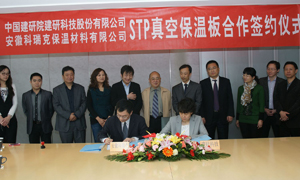 建研科技和安徽科瑞克保溫材料有限公司就STP真空保溫板合作項(xiàng)目舉行簽約儀式