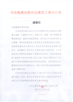 為此,中央電視臺新臺址建設(shè)工程辦公室特發(fā)來感謝信,對我院在建設(shè)過程中給予的大力支持和幫助表示衷心的感謝。