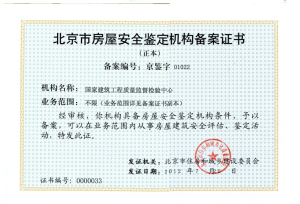 根據(jù)《北京市房屋建筑安全評(píng)估與鑒定管理辦法》(京建發(fā)【2011】207號(hào))要求,中心于2011年組織100余人積極參加北京市房屋安全鑒定人員資格培訓(xùn)并取得資格證書,并于今年7月初正式將資質(zhì)申請(qǐng)材料遞交至北京市住建委。北京市住建委對(duì)申報(bào)材料進(jìn)行了嚴(yán)格的審查,于2012年7月20日批準(zhǔn)了中心的北京市房屋安全鑒定機(jī)構(gòu)備案申請(qǐng),國(guó)家建筑工程質(zhì)量監(jiān)督檢驗(yàn)中心正式取得北京市房屋安全鑒定資質(zhì),資質(zhì)備案編號(hào)京鑒字01022。