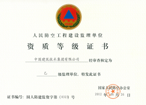 近日,中技集團(tuán)申請的“人民防空工程建設(shè)監(jiān)理資質(zhì)”通過國家人民防空辦公室的審批,取得了人防工程監(jiān)理乙級資質(zhì),為集團(tuán)公司開拓了業(yè)務(wù)領(lǐng)域,也為中技集團(tuán)更好地承接房屋建筑監(jiān)理工程奠定了基礎(chǔ)。