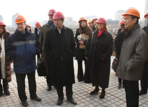 美國能源部副部長Jonathan Elkind詳細(xì)參觀了示范建筑保溫圍護結(jié)構(gòu)做法、高性能冷熱源站、真空玻璃中置遮陽一體窗、槽式太陽能集熱器等技術(shù),Jonathan Elkind及美方專家對示范樓整體建設(shè)水平和進度表示贊賞,對我院領(lǐng)導(dǎo)和中美雙方科研人員對示范樓的傾力投入表示感謝。