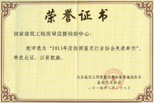 北京市2013 年度檢測鑒定行業(yè)協(xié)會先進(jìn)單位