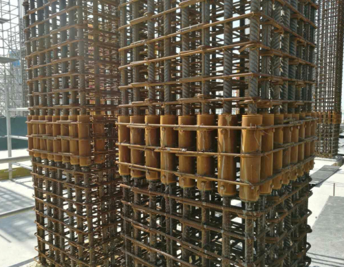 港珠澳大橋沉管隧道與東西人工島暗埋段,因項目對原材料工藝要求高,并且需要用到大量的現(xiàn)澆結(jié)構(gòu)梁鋼筋籠和現(xiàn)澆結(jié)構(gòu)柱鋼筋筋籠。這對于鋼筋連接的強度、加工工藝、設(shè)備加工都是挑戰(zhàn)。特別是在梁、柱鋼筋籠的對接上,傳統(tǒng)的鋼筋籠連接如鐓粗直螺紋鋼筋連接技術(shù),加長絲吸收裝配誤差的能力不夠,而且大直徑多數(shù)量的鋼筋密集會造成操作不便,管鉗伸展不開。在研究了此類鋼筋連接的問題后,建研科技的技術(shù)專家提出了使用定制化的CABR的灌漿套筒連接解決方案來完成項目中的現(xiàn)澆結(jié)構(gòu)梁、柱鋼筋(籠)連接,這也是國內(nèi)現(xiàn)澆結(jié)構(gòu)中大量使用鋼筋套筒灌漿連接技術(shù)的首個項目。