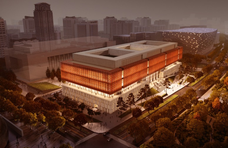 中國工藝美術(shù)館工程總建筑面積約8.68萬平米,以同中國傳統(tǒng)工藝美術(shù)珍品相呼應(yīng)的“藏寶閣”作為建筑外觀,位于北京奧林匹克公園中心區(qū)文化綜合區(qū),緊鄰中國科技館和未來的中國國家美術(shù)館新館館址,集國內(nèi)唯一的國家級工藝美術(shù)博物館和首個國家級非物質(zhì)文化遺產(chǎn)館的功能于一身,是國家重點文化建設(shè)項目之一。該工程預(yù)計將于2021年初完成外立面和景觀環(huán)境的建設(shè),向建黨100周年獻禮。