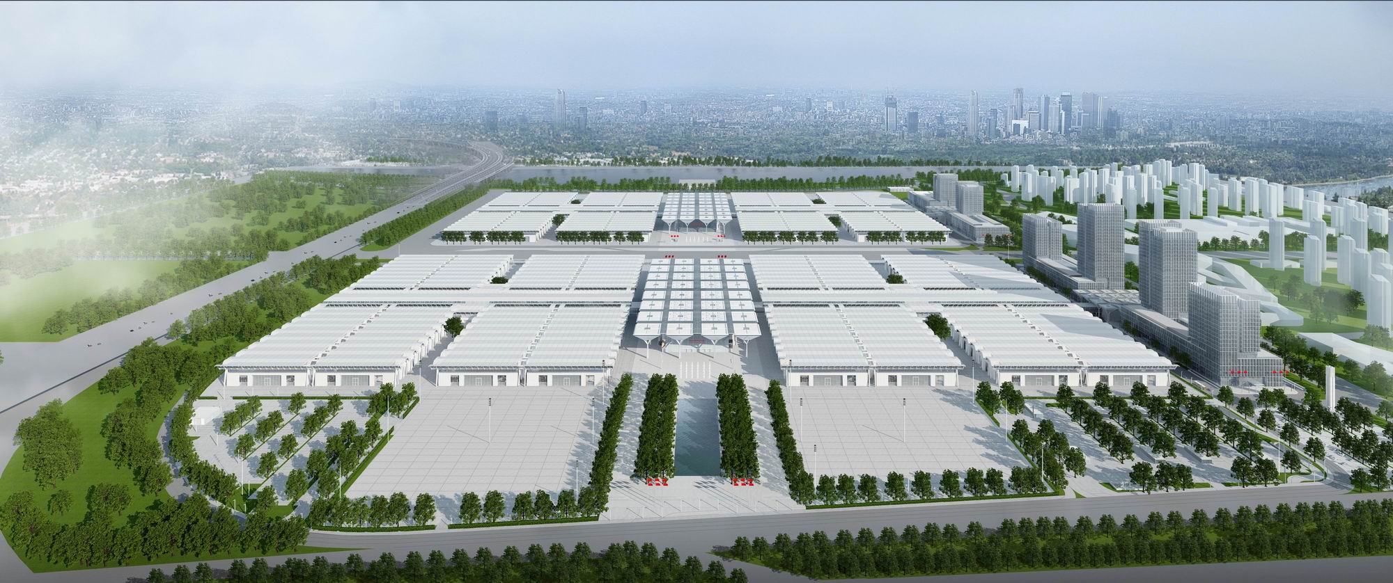 設(shè)計(jì)院承接一期工程48萬(wàn)平方米展館區(qū)的工程設(shè)計(jì),采用地源熱泵、屋頂太陽(yáng)能等技術(shù),滿足綠建三星、A級(jí)全裝配式的高標(biāo)準(zhǔn)設(shè)計(jì)要求,體現(xiàn)了生態(tài)環(huán)保綠色發(fā)展理念和領(lǐng)先的綜合設(shè)計(jì)水準(zhǔn)。展館區(qū)中央大廳采用32個(gè)巨大鋼傘,撐起晶瑩剔透、簡(jiǎn)約壯麗的玻璃幕墻,構(gòu)建宏大的建筑空間,16個(gè)展廳由交通連廊兩兩串聯(lián),巨大的A字柱搭配折線形屋頂,展現(xiàn)工業(yè)建筑之美。