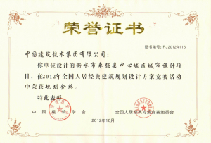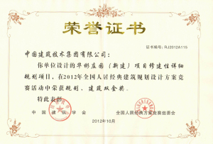 在中國建筑學(xué)會、環(huán)境保護(hù)部環(huán)境發(fā)展中心和中國建筑文化研究會共同舉辦的“2012年全國人居經(jīng)典建筑規(guī)劃設(shè)計方案競賽”中,中技集團(tuán)參賽的“華彬莊園(新建)項目修建性詳細(xì)規(guī)劃” 項目獲得規(guī)劃、建筑雙金獎、“衡水市棗強(qiáng)縣中心城區(qū)城市設(shè)計”項目獲得規(guī)劃金獎。