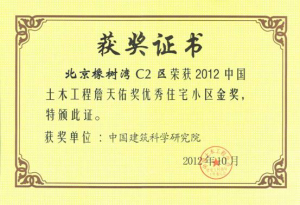 “2012中國(guó)土木工程詹天佑獎(jiǎng)優(yōu)秀住宅小區(qū)金獎(jiǎng)”
