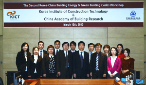 應(yīng)韓國(guó)建設(shè)科學(xué)研究院(KICT)邀請(qǐng),我院數(shù)位專(zhuān)家赴韓國(guó)高陽(yáng)市參加于2013年3月15日召開(kāi)的第二屆中韓建筑節(jié)能與綠色建筑研討會(huì)。此次會(huì)議是繼2011年12月北京首屆中韓建筑節(jié)能與綠色建筑研討會(huì)后,雙方第二次進(jìn)行雙邊交流。出訪團(tuán)由環(huán)能院徐偉院長(zhǎng)帶隊(duì),環(huán)能院共7位技術(shù)人員應(yīng)邀出席。