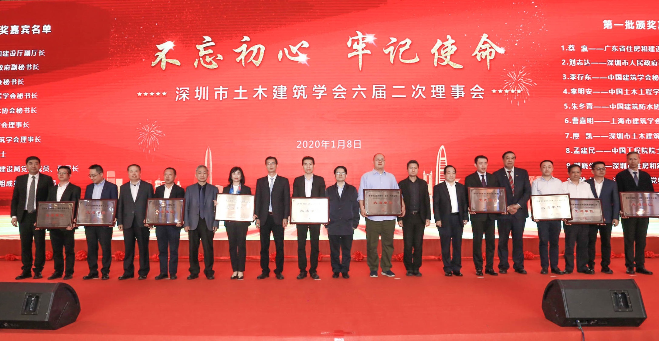 1月8日,深圳市土木建筑學會召開主題為“不忘初心、牢記使命”的六屆二次理事會暨慶祝深圳經濟特區(qū)成立四十周年表彰大會,總結40年城市建設成果,并表彰先進集體和先進個人。