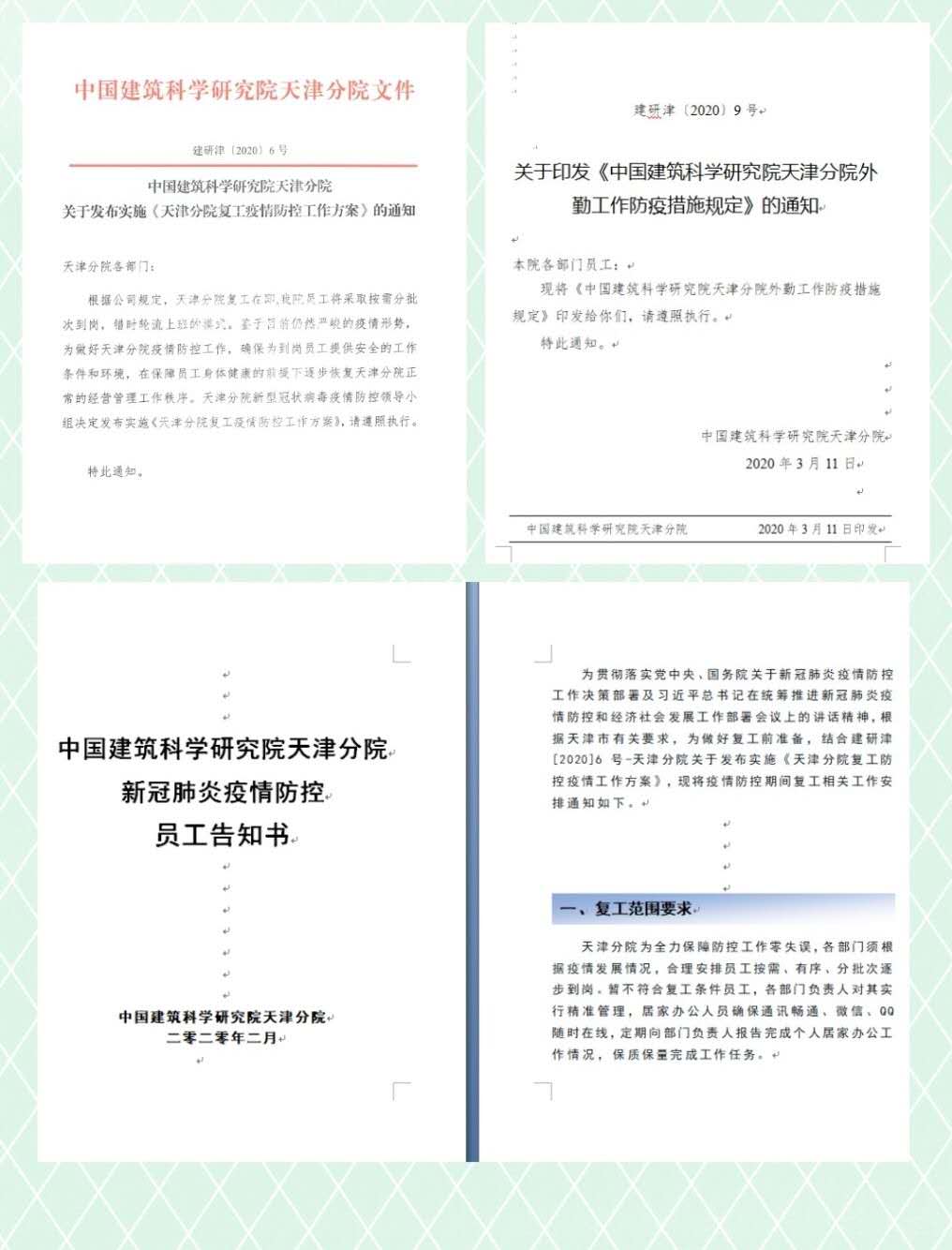疫情發(fā)生后,天津分院領(lǐng)導(dǎo)班子將疫情防控工作放在首要位置,嚴(yán)格落實(shí)防控責(zé)任,迅速成立新冠肺炎疫情防控工作小組,積極開(kāi)展分院疫情防控工作監(jiān)督檢查,制定《天津分院復(fù)工防控疫情工作方案》、《天津分院疫情防控員工告知書(shū)》、《天津分院外勤工作防疫措施規(guī)定》、《天津分院福保實(shí)驗(yàn)室外勤防疫措施》等措施,保證分院疫情防控工作落實(shí)到位。