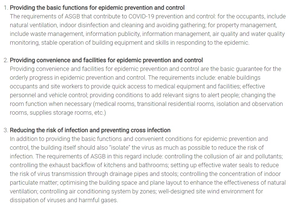 文中歸納《綠色建筑評價標(biāo)準(zhǔn)》GB/T 50378-2019在新冠肺炎的防控中具有五個方面的貢獻(xiàn):具備疫情防控的基礎(chǔ)功能;提供疫情防控工作開展的便利條件;助于降低感染風(fēng)險和預(yù)防交叉感染;促進(jìn)和保障建筑使用者身體健康;穩(wěn)定疫情防控期間生產(chǎn)生活環(huán)境。文末指出隨著中國建筑科技的發(fā)展,建筑開始強(qiáng)調(diào)健康屬性,《健康建筑評價標(biāo)準(zhǔn)》T/ASC02-2016是專門關(guān)注建筑健康性能的標(biāo)準(zhǔn)。新型冠狀病毒之后,建筑健康性能將更受關(guān)注,以在未來應(yīng)對重大公共衛(wèi)生事件中發(fā)揮更大的貢獻(xiàn)。