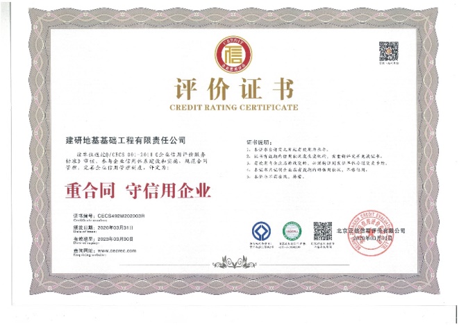 建研地基自成立以來,在經(jīng)營活動中始終遵守國家各項法律法規(guī),不斷健全企業(yè)自身的誠信管理體系,完善企業(yè)合同管理制度,在行業(yè)內(nèi)樹立了良好的口碑。