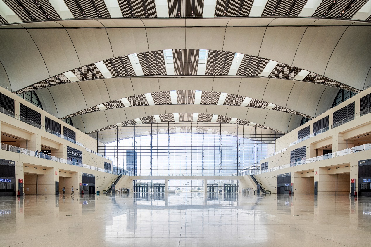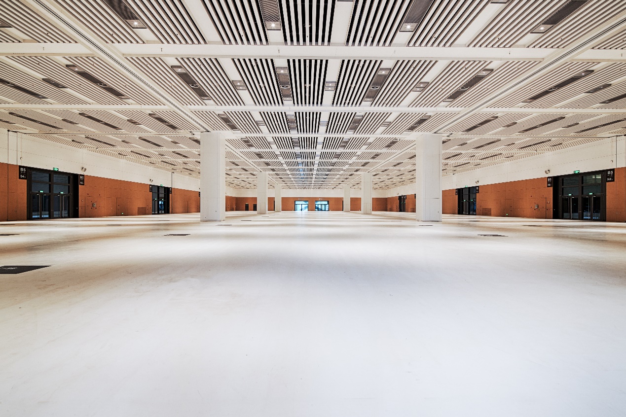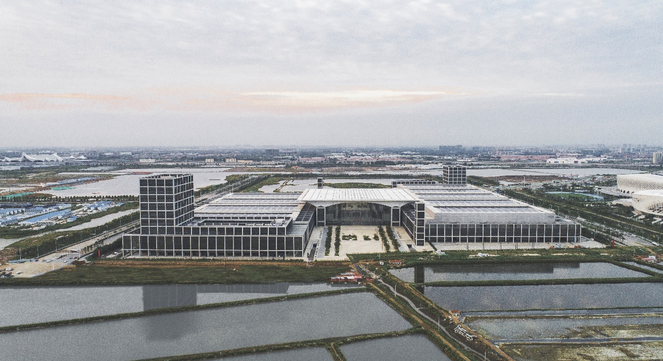項(xiàng)目團(tuán)隊(duì)在設(shè)計(jì)過(guò)程中,堅(jiān)持國(guó)際標(biāo)準(zhǔn)、高端定位及綠色環(huán)保的設(shè)計(jì)理念,突破多項(xiàng)技術(shù)難關(guān),有效融入了“互聯(lián)網(wǎng)+”思維的先進(jìn)理念,積極打造全國(guó)領(lǐng)先的智慧展館,提出了“雙首層”會(huì)展綜合體的概念,研究了預(yù)應(yīng)力預(yù)制混凝土管樁強(qiáng)腐蝕環(huán)境設(shè)計(jì),采用空鋪反粘的外防水做法,并運(yùn)用36米超大跨度的有粘結(jié)預(yù)應(yīng)力梁、94.5米超大跨度登錄大廳空間、大跨度無(wú)柱展廳空間、1萬(wàn)平方米張弦魚(yú)腹式玻璃幕墻、4萬(wàn)平方米世界最大反裝膜結(jié)構(gòu)、9萬(wàn)平方米屋面太陽(yáng)能光伏板等。