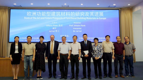 Plank教授的報(bào)告涉及歐洲功能性材料應(yīng)用于水泥、混凝土等建材領(lǐng)域的研究現(xiàn)狀,并具體介紹了氣凝膠材料、光催化劑、C-S-H-PCE納米籽晶早強(qiáng)劑、碳納米管等納米技術(shù)在建筑材料中的應(yīng)用,及保水劑、化學(xué)外加劑等功能性材料的在歐洲最新研究成果。學(xué)術(shù)交流階段,參加講座的代表們踴躍提問,就自己關(guān)注的問題與Plank教授進(jìn)行了深入的探討。