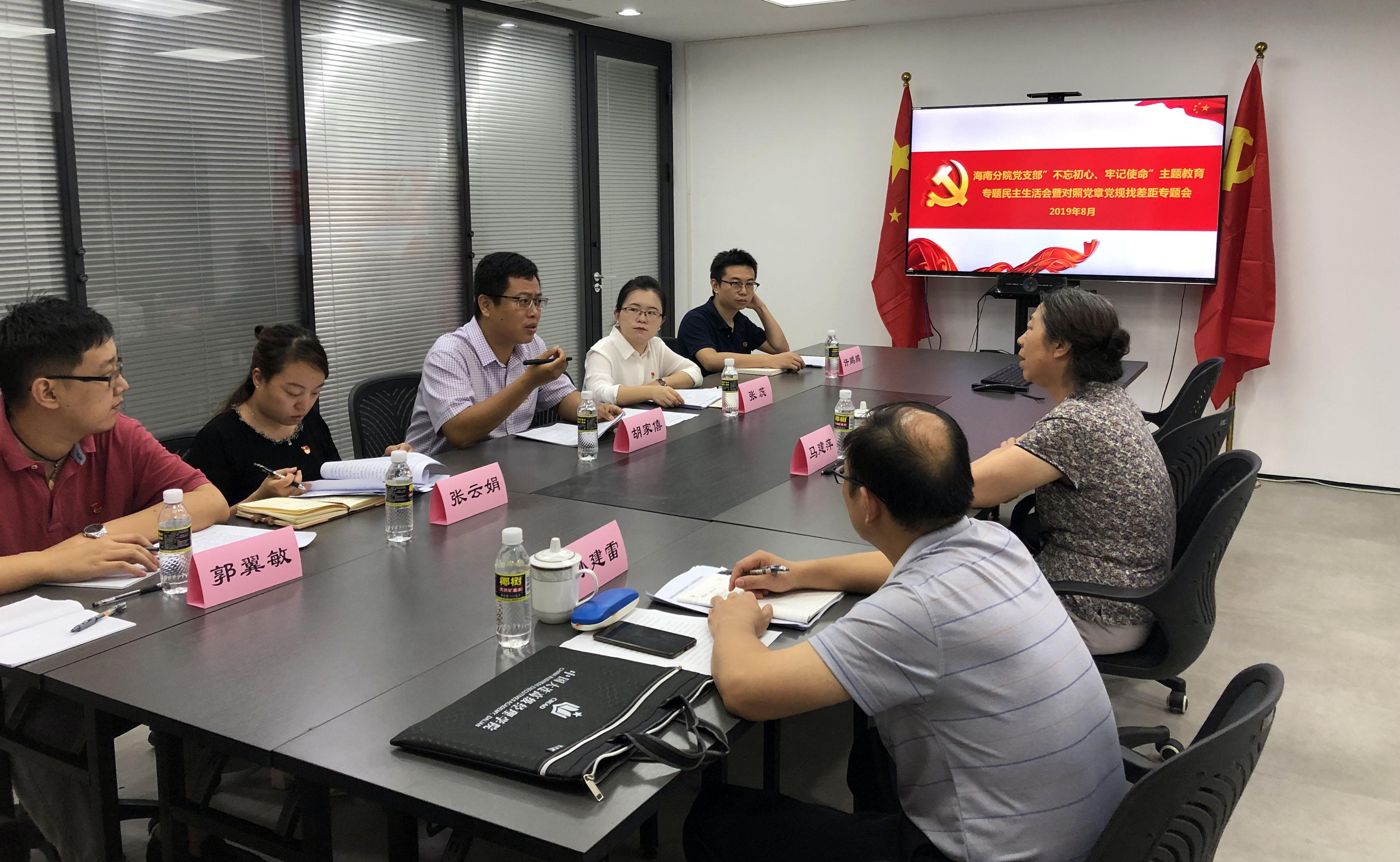 根據(jù)公司黨委“不忘初心,牢記使命”主題教育工作部署,8月16日,公司海南分院黨支部召開“不忘初心、牢記使命”主題教育專題民主生活會。海南分院黨支部書記、院長胡家僖主持會議,支部委員、副院長張蕊出席會議。公司黨委主題教育第一巡回指導組組長馬建萍、成員孫建雷到會指導,分院黨支部委員及部分部門負責人列席會議。