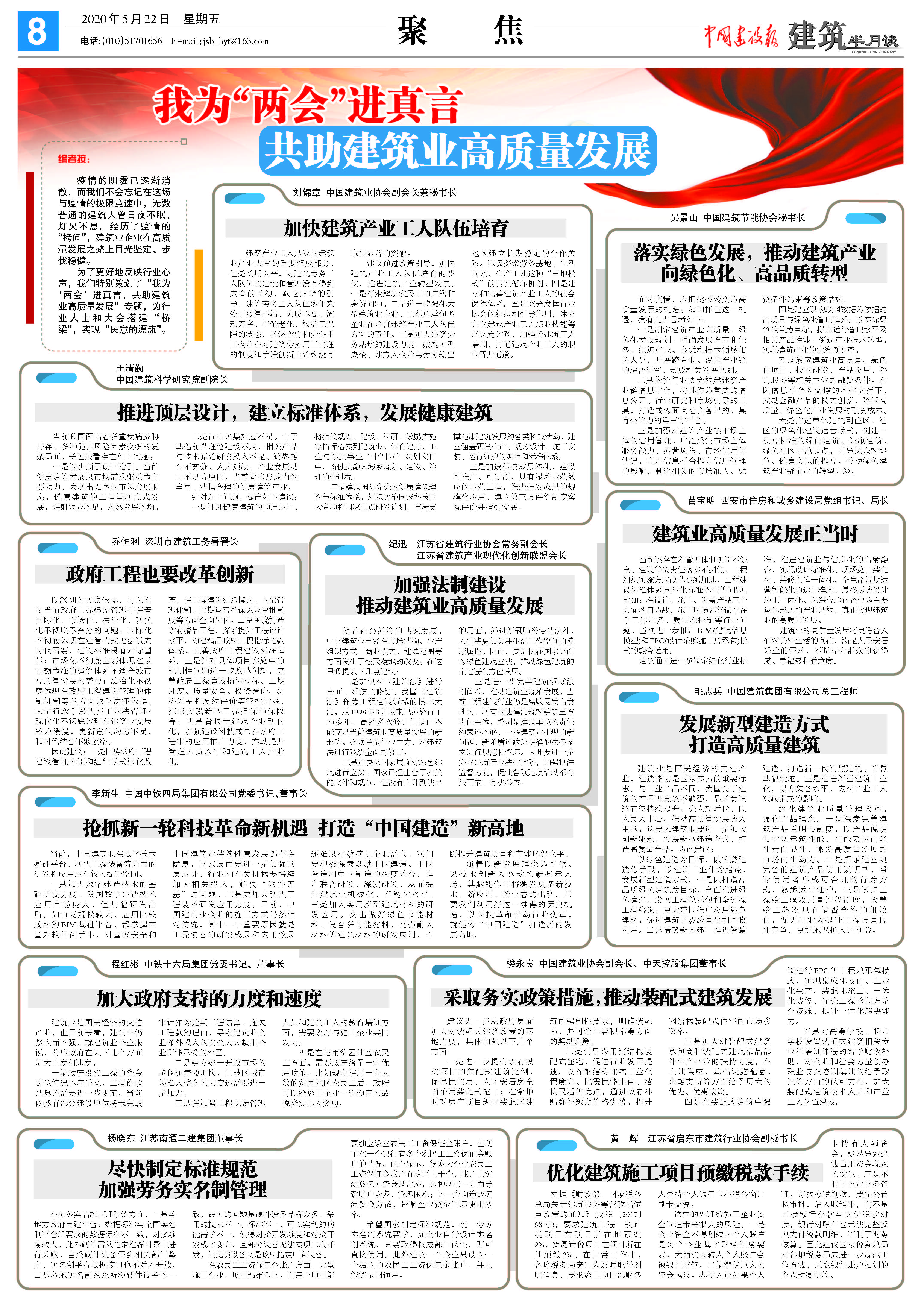 十三屆全國人大三次會(huì)議于5月22日在京開幕。公司副總經(jīng)理王清勤就健康建筑的發(fā)展為“兩會(huì)”建言獻(xiàn)策,并在《中國建設(shè)報(bào)》“直通兩會(huì)”特別策劃——我為“兩會(huì)”進(jìn)真言的專欄中發(fā)表名為《推進(jìn)頂層設(shè)計(jì),建立標(biāo)準(zhǔn)體系,發(fā)展健康建筑》的專題文章。