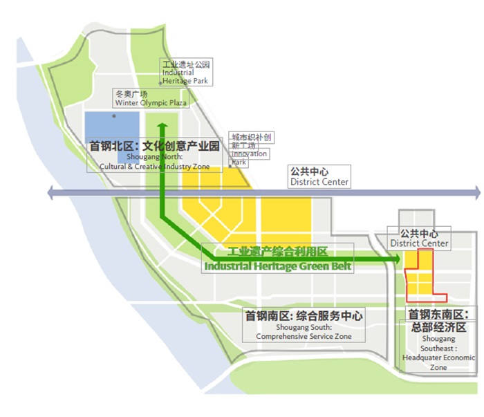 首鋼園區(qū)規(guī)劃分為3個(gè)片區(qū),首鋼北區(qū)依托現(xiàn)狀工業(yè)遺產(chǎn),作為文化創(chuàng)意園區(qū),并已完成冬奧廣場(chǎng),遺址公園等相關(guān)開發(fā),北京冬奧組委已入駐此片區(qū);首鋼南區(qū)規(guī)劃為綜合服務(wù)中心;項(xiàng)目基地位于首鋼東南區(qū),規(guī)劃為總部經(jīng)濟(jì)區(qū);首鋼東南區(qū)為國際甲級(jí)寫字樓,旨在打造世界級(jí)城市新地標(biāo)。