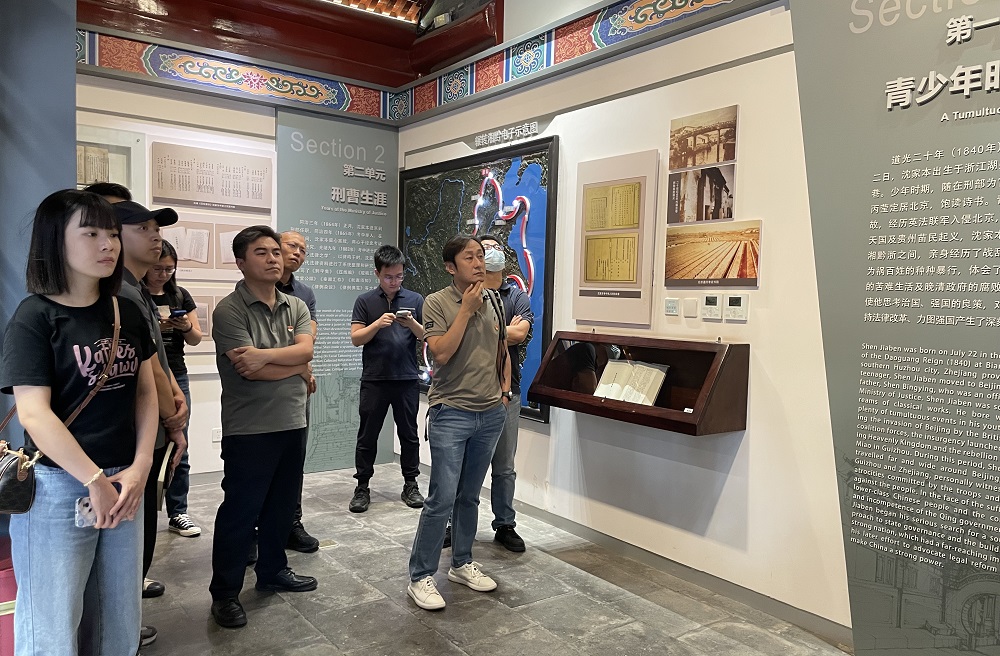 座談會(huì)后,大家一同參觀了中國(guó)近代法律學(xué)的先驅(qū)沈家本位于西城區(qū)金井胡同1號(hào)的故居,了解了沈家本作為清末法學(xué)泰斗,一生為改革中國(guó)法制作出的不懈努力,以及為中國(guó)法制近代化做出的杰出貢獻(xiàn),如其設(shè)置的中國(guó)檢察制度、中國(guó)審判制度、中國(guó)律師制度等,都是中國(guó)近現(xiàn)代法制開(kāi)創(chuàng)之肇始。大家在認(rèn)真聽(tīng)取講解員對(duì)沈家本生平事跡介紹講解同時(shí),近距離參觀了沈家本作為清末修律大臣最后十年的居所和文獻(xiàn)真跡,進(jìn)一步理解了沈家本的家國(guó)情懷。