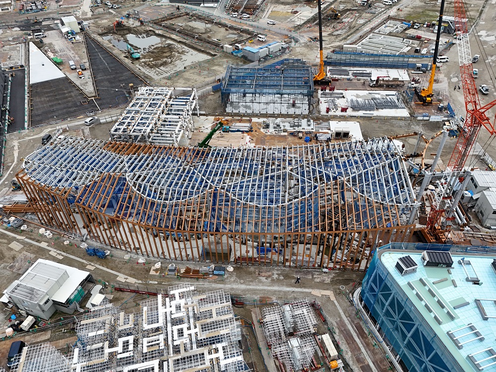 2025年日本大阪世博會(huì)將于2025年4月13日至10月13日舉辦。中國(guó)館是大阪世博會(huì)用地面積最大的外國(guó)自建館之一,也是第一個(gè)開工建設(shè)的大型自建館,自今年2月2日開工以來,備受國(guó)內(nèi)外各方關(guān)注。經(jīng)過不到5個(gè)月緊鑼密鼓的施工作業(yè),陸續(xù)完成了土方開挖、基礎(chǔ)底板等基礎(chǔ)工程。目前地上主體鋼結(jié)構(gòu)現(xiàn)場(chǎng)安裝順利開展,計(jì)劃將于7月中旬完成主體結(jié)構(gòu)封頂?shù)睦锍瘫M(jìn)度目標(biāo)。