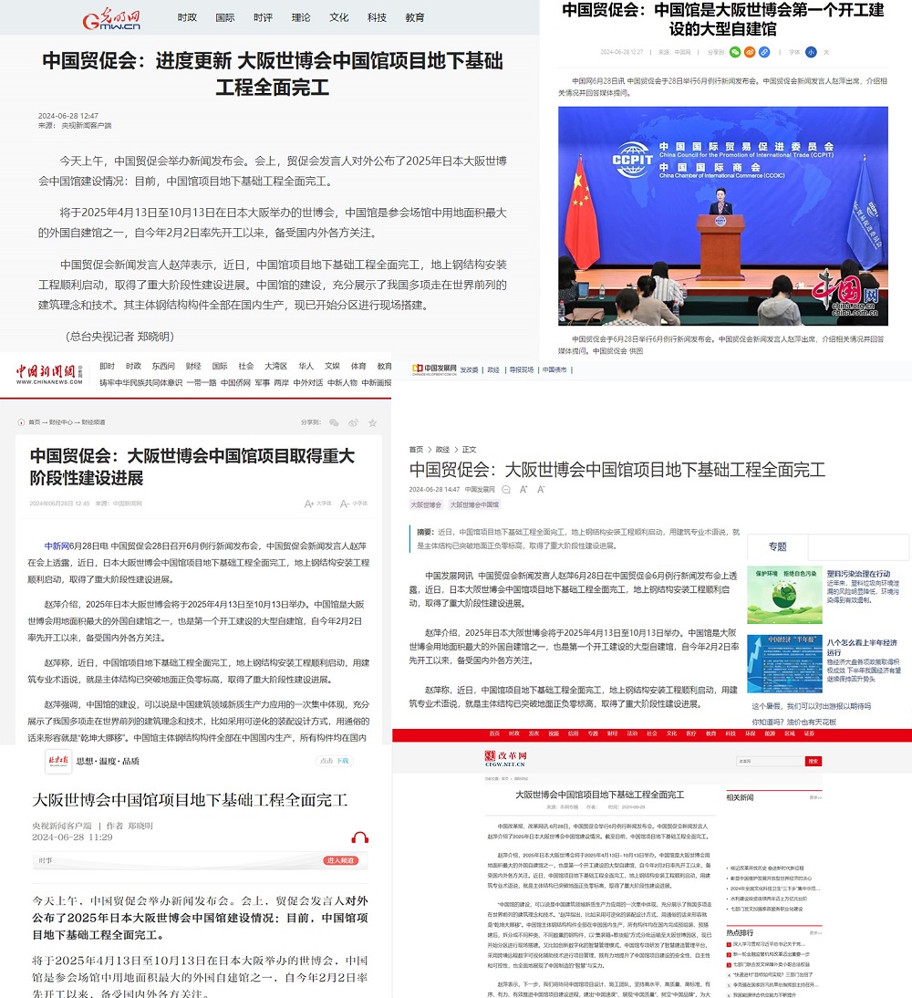 6月28日,央視新聞?lì)l道、中國(guó)國(guó)際電視臺(tái)對(duì)2025年日本大阪世博會(huì)中國(guó)館項(xiàng)目的建設(shè)進(jìn)展情況進(jìn)行了詳細(xì)報(bào)道。由中國(guó)建研院承擔(dān)全過程工程咨詢的中國(guó)館項(xiàng)目地下基礎(chǔ)工程目前已全面完工,地上鋼結(jié)構(gòu)工程按計(jì)劃高效有序推進(jìn)。
