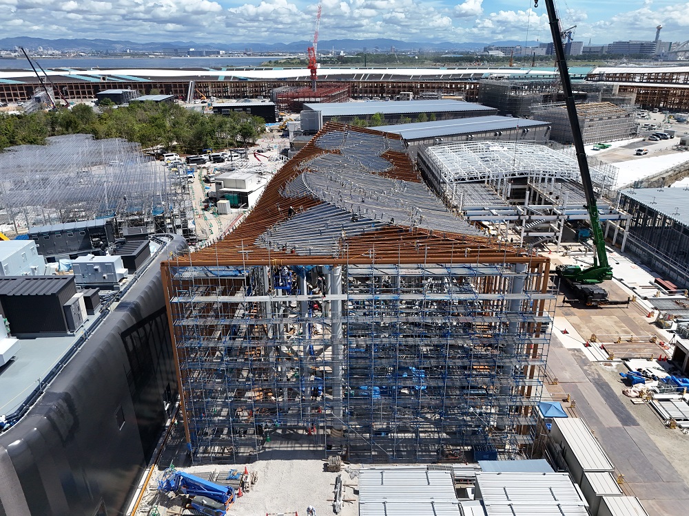 7月31日,隨著最后一根屋頂鋼梁精準吊裝到位,2025年日本大阪世博會中國館(以下簡稱“中國館”)主體結構順利封頂,在海外大型自建館中率先完成,中國館建設取得重要階段性成果。