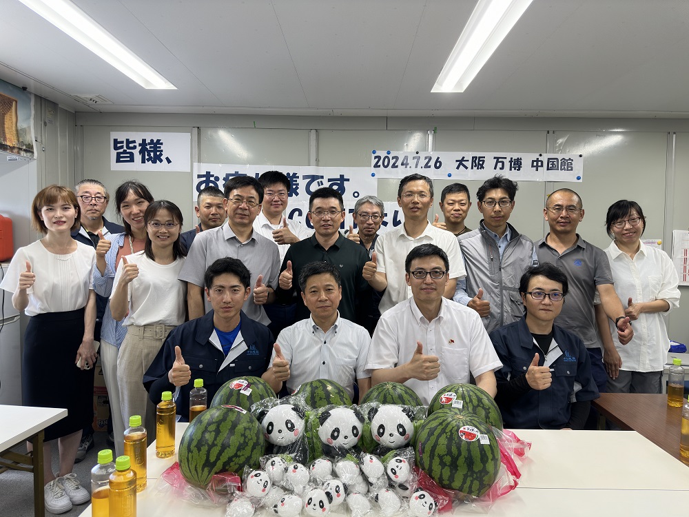 在中國館主體結構封頂前,為順利推進工程建設,切實保障工程質量,中國建研院黨委委員、副總經理肖從真帶領專家團隊赴施工現(xiàn)場進行指導,總結前一階段工作,并對后續(xù)工作進行安排部署。中國駐大阪總領事館副總領事方煒、貿促會駐日本代表處副總代表史銘一行蒞臨施工現(xiàn)場,開展了“夏日送清涼”慰問活動,為辛勤工作的建設者們送去絲絲涼意和濃濃溫情。