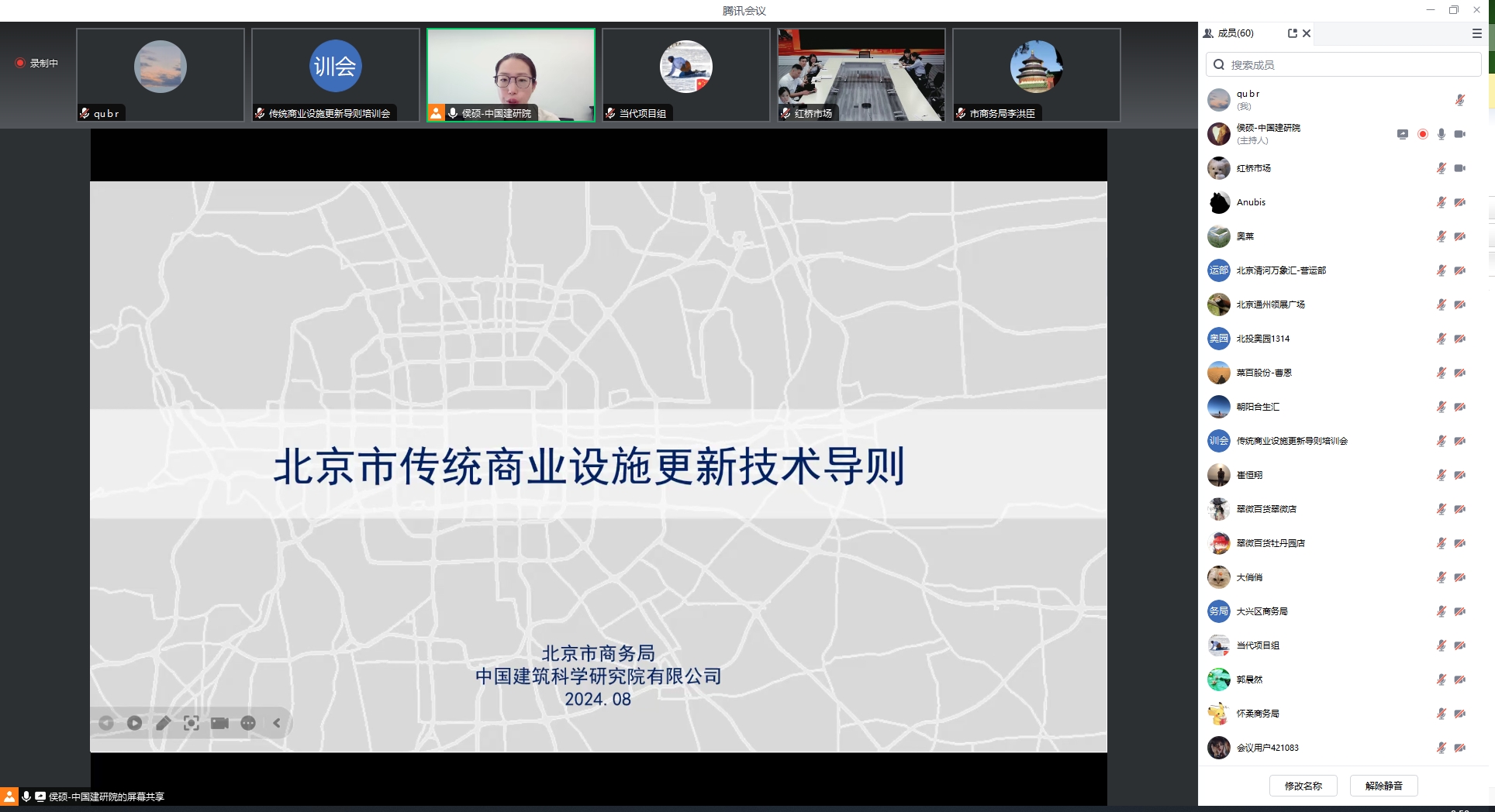 8月22日,北京市商務(wù)局組織《導(dǎo)則》線上宣貫培訓(xùn)會(huì)議,來自北京市商務(wù)局、各區(qū)商務(wù)局、商業(yè)相關(guān)主體單位等近百人于線上參加會(huì)議。中國(guó)建研院建筑設(shè)計(jì)院設(shè)計(jì)六院侯碩代表編制單位對(duì)《導(dǎo)則》的主要內(nèi)容進(jìn)行了深入講解。