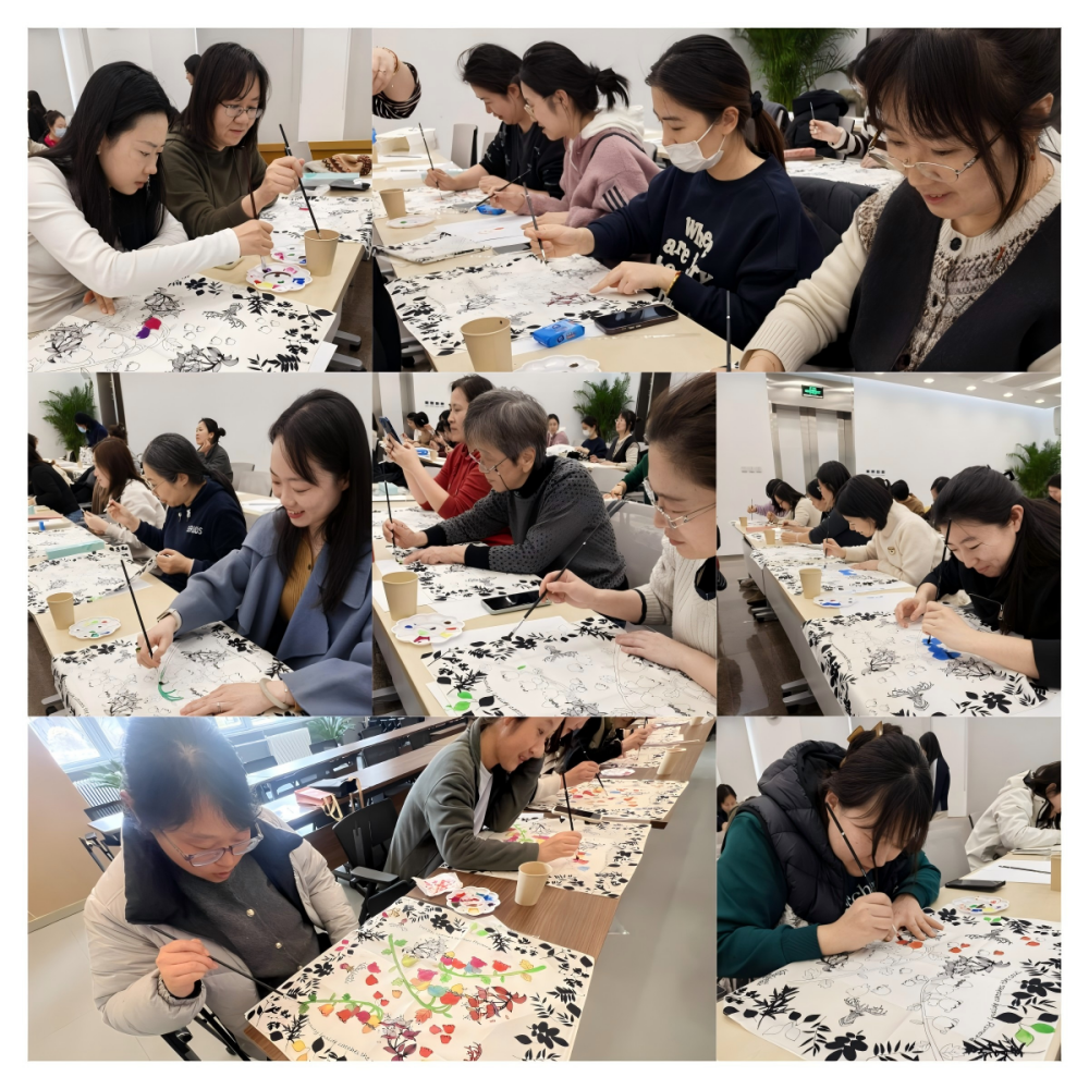 活動現(xiàn)場,專業(yè)老師從絲巾材質(zhì)特性解析到水墨暈染技巧,從色彩心理學(xué)應(yīng)用到個性化構(gòu)圖設(shè)計,進(jìn)行了深入淺出的制作講解,為女職工們開啟了藝術(shù)之門。在老師的悉心指導(dǎo)下,百余位女職工以絲為紙,將春日靈感化作流動的畫卷:有的揮毫潑墨,演繹寫意山水的磅礴氣勢;有的工筆細(xì)描,勾勒花鳥倩影的靈動之美;更有現(xiàn)代抽象派作品驚艷亮相,展現(xiàn)出別樣的藝術(shù)風(fēng)采。