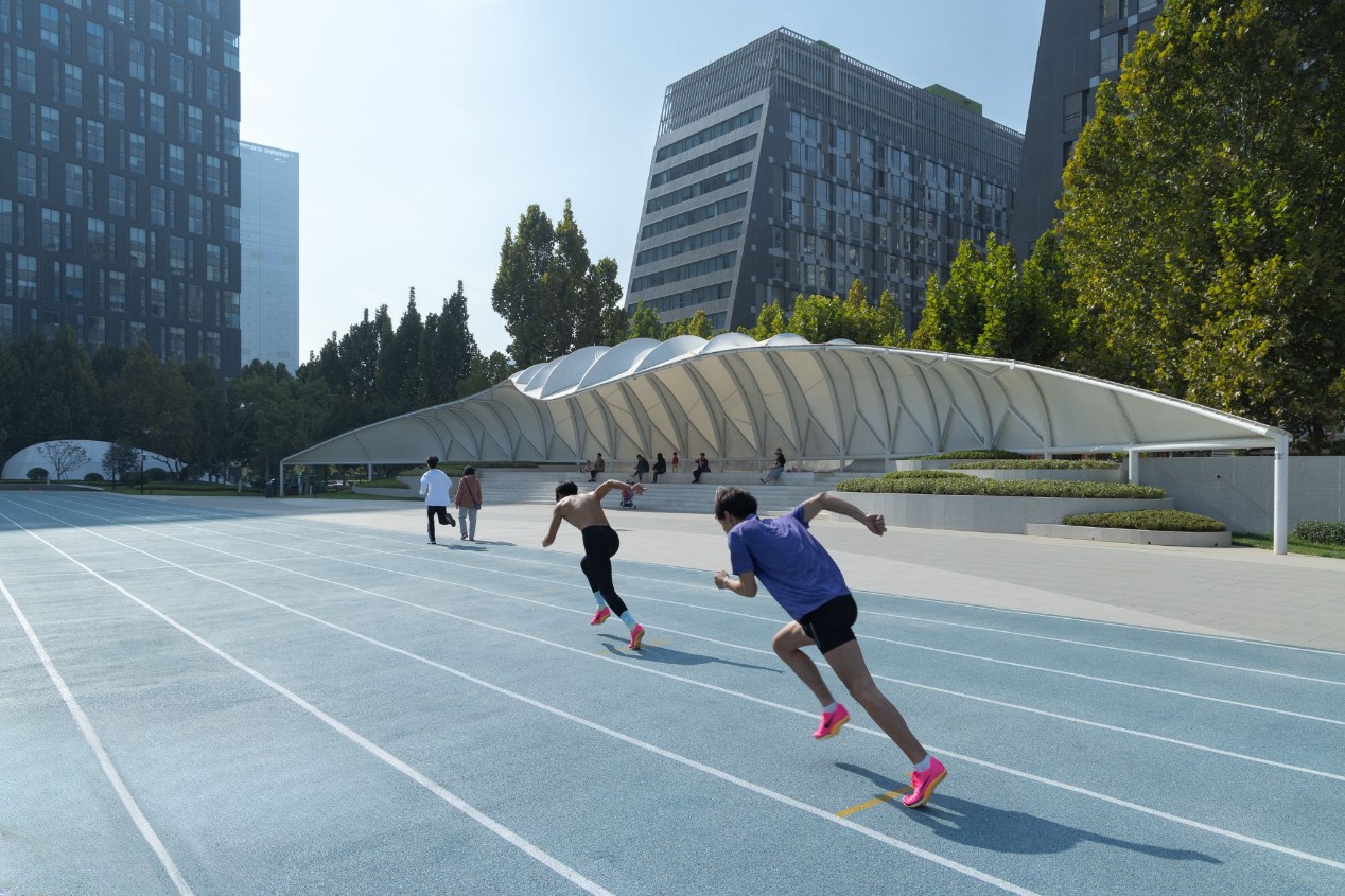 精心處理場地高程,通過立體化景觀的系統(tǒng)性設(shè)計,實現(xiàn)了地段內(nèi)雨水綜合管理利用,改善戶外近人環(huán)境的熱舒適度,營造更加健康舒適的休閑運(yùn)動場所。?