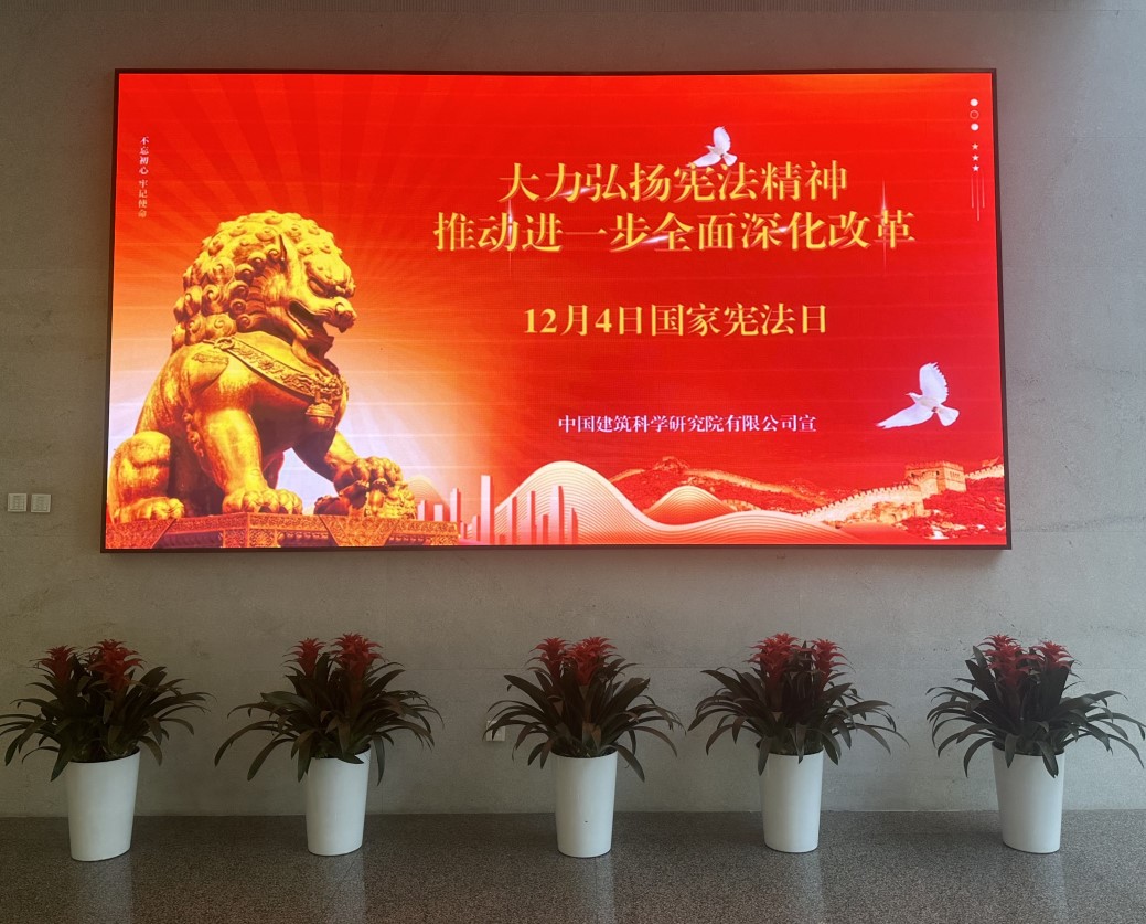 通過中國建研院大堂LED大屏滾動(dòng)播放憲法宣傳視頻的形式,營造“憲法在身邊”的學(xué)法用法氛圍,引導(dǎo)職工認(rèn)識(shí)憲法、學(xué)習(xí)憲法,真正實(shí)現(xiàn)學(xué)法尊法,我在“憲”場(chǎng)。