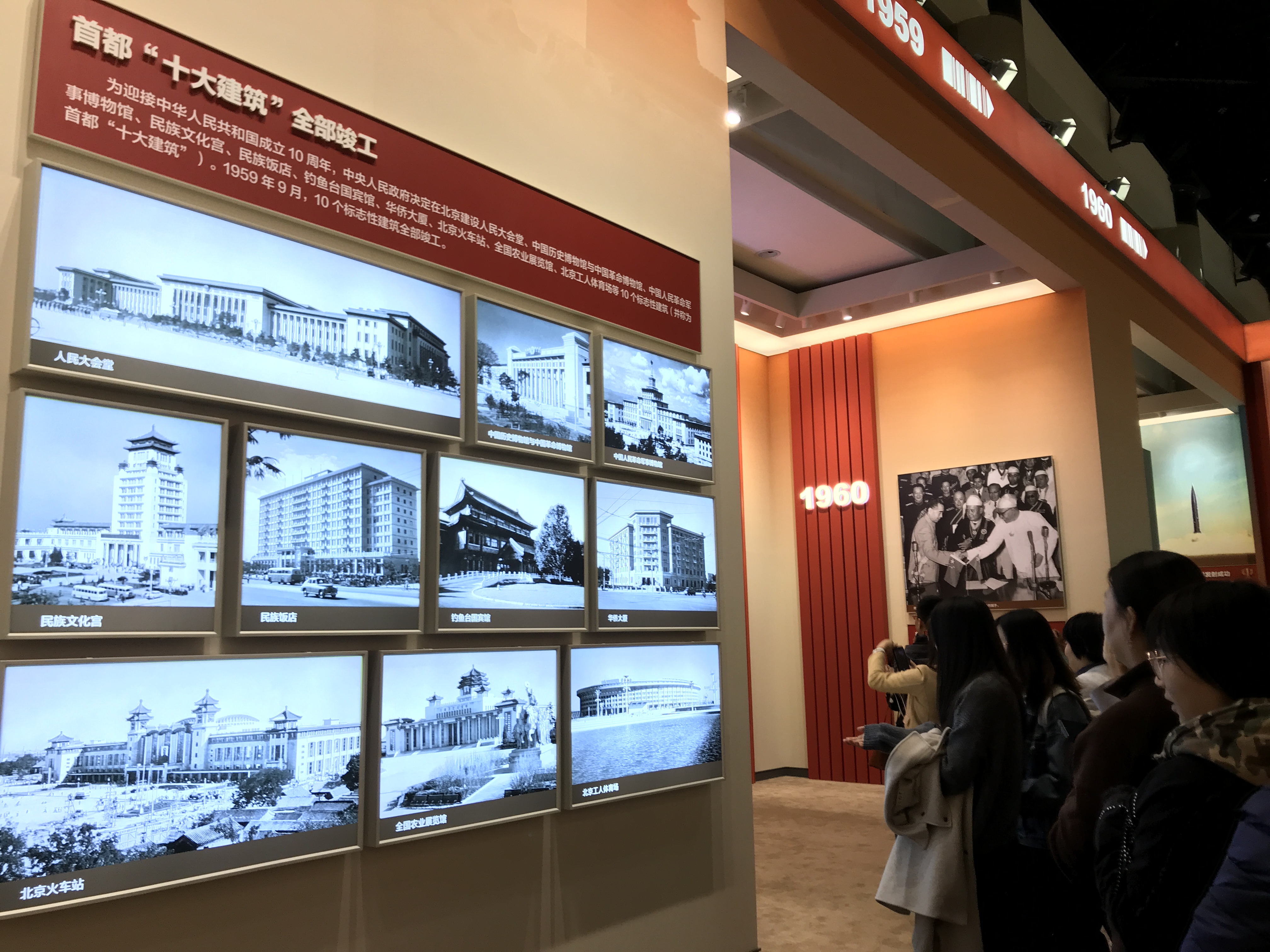 設(shè)計(jì)院青年在標(biāo)有自己出生年份的展位前合影留念,在“首都‘十大建筑’全部竣工”的展位前駐足。他們久久凝望中國(guó)歷史博物館與中國(guó)革命博物館的照片,向公司前輩們致敬,并表示,將在各自的崗位上盡職盡責(zé)、扎實(shí)工作,為實(shí)現(xiàn)中華民族偉大復(fù)興的中國(guó)夢(mèng)而奮斗。