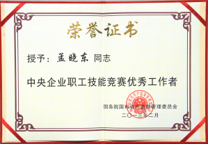 “中央企業(yè)職工競賽優(yōu)秀工作者”榮譽稱號