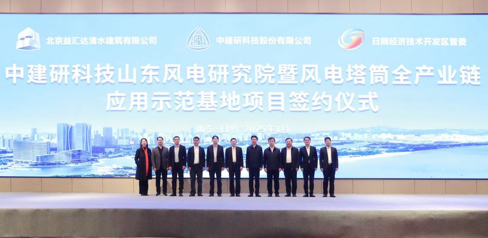 1月25日,中國建研院黨委副書記、總經(jīng)理樊金龍一行赴日照市交流考察,并參加由中國建研院所屬中建研科技、日照經(jīng)濟技術(shù)開發(fā)區(qū)管委和北京益匯達清水建筑有限公司聯(lián)手共建的風(fēng)電塔筒全產(chǎn)業(yè)鏈應(yīng)用示范基地項目簽約儀式。