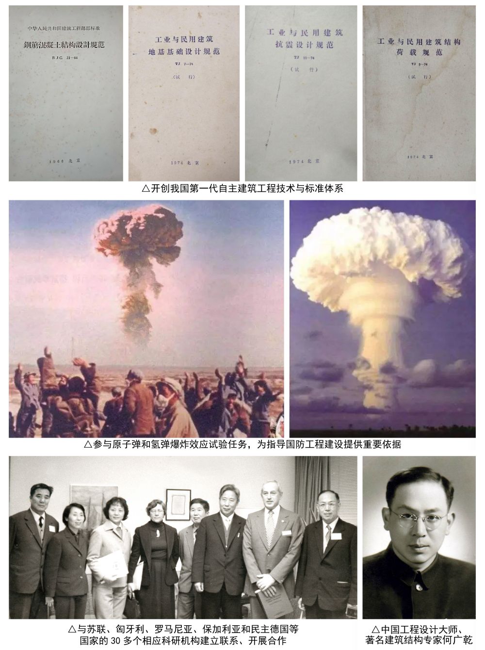 這一時期,開創(chuàng)了我國第一代自主建筑工程技術(shù)與標(biāo)準(zhǔn)體系,與30多個國外科研機(jī)構(gòu)建立聯(lián)系、開展合作。通過參與原子彈和氫彈爆炸效應(yīng)試驗任務(wù),積累了大量試驗數(shù)據(jù),建立了相關(guān)理論體系,為指導(dǎo)國防工程建設(shè)提供了重要依據(jù)。此時,中國建研院已有中國工程設(shè)計大師何廣乾等一大批建筑科學(xué)研究領(lǐng)域杰出人才。