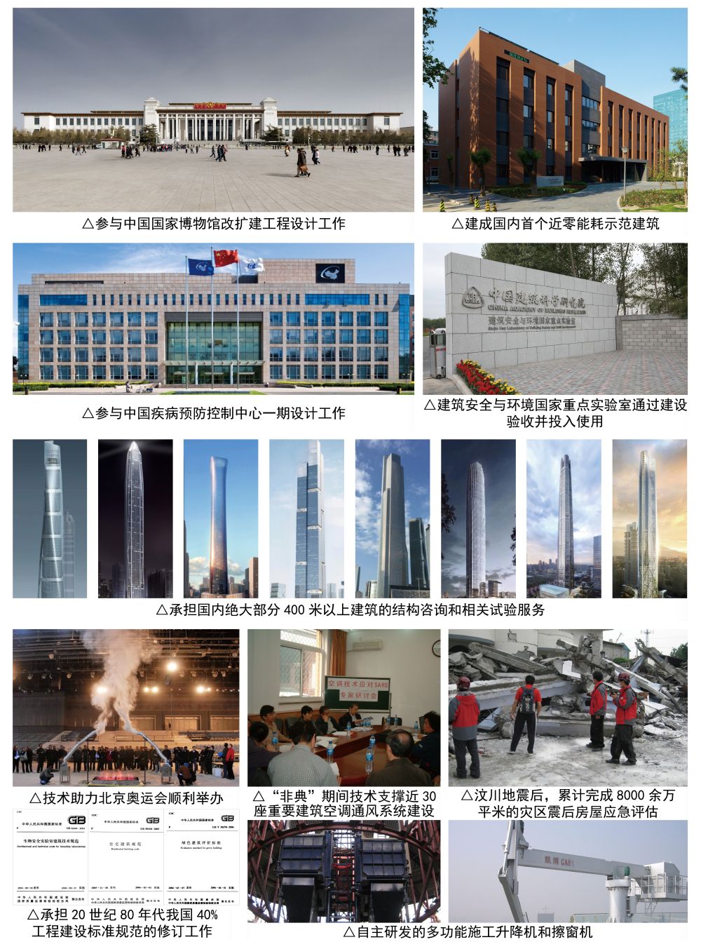 這一時期,參與了中國國家博物館改擴(kuò)建工程、中國疾病預(yù)防控制中心一期等設(shè)計工作,建成了國內(nèi)首個近零能耗示范建筑和建筑安全與環(huán)境國家重點實驗室,承擔(dān)了國內(nèi)絕大部分400米以上建筑的結(jié)構(gòu)咨詢和相關(guān)試驗服務(wù),以及20世紀(jì)80年代我國40%工程建設(shè)標(biāo)準(zhǔn)規(guī)范的修訂工作,為北京奧運會、“非典”防控、汶川地震等提供技術(shù)保障。