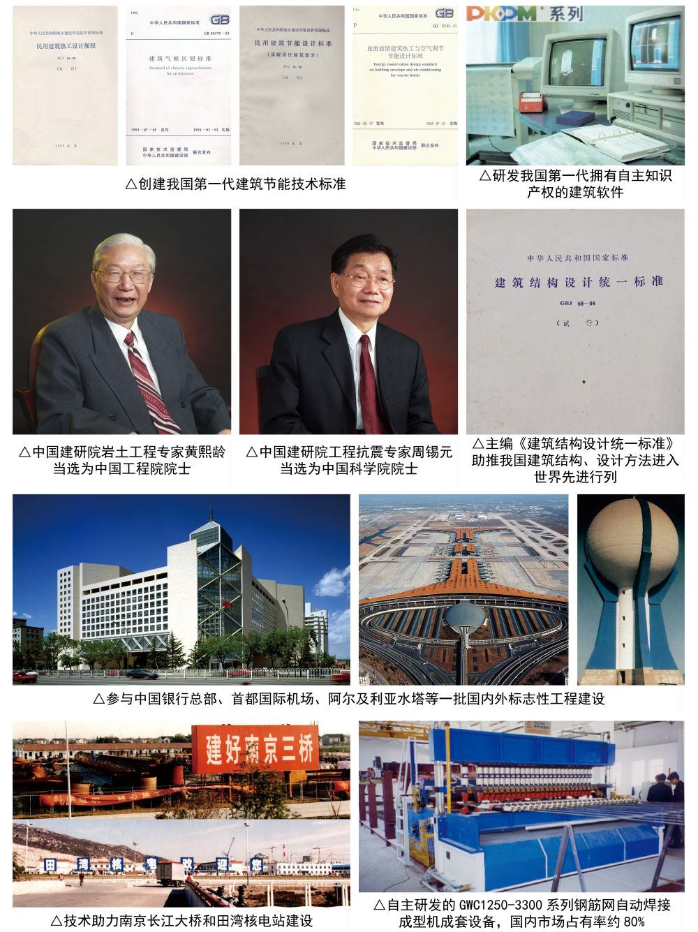 這一時期,創(chuàng)建了中國第一代建筑節(jié)能技術(shù)標(biāo)準(zhǔn),研發(fā)了中國第一代擁有自主知識產(chǎn)權(quán)的建筑軟件,國內(nèi)設(shè)計單位使用率達(dá)90%,還參與了中國銀行總部、首都國際機(jī)場、阿爾及利亞水塔等一批國內(nèi)外標(biāo)志性工程的建設(shè)。此時,中國建研院巖土工程專家黃熙齡、工程抗震專家周錫元分別當(dāng)選為中國工程院院士、中國科學(xué)院院士。