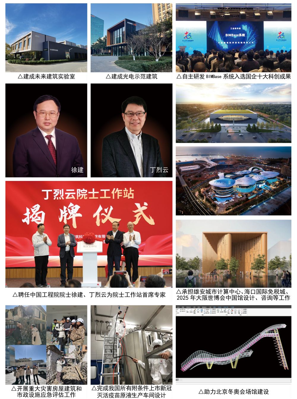 這一時期,建成了中國建研院未來建筑實驗室和光電示范建筑,創(chuàng)新推出了國內(nèi)首款完全自主知識產(chǎn)權(quán)的BIMBase系統(tǒng),承擔(dān)了雄安城市計算(超算云)中心、??趪H免稅城、2025年日本大阪世博會中國館等一批國家重大項目的設(shè)計、咨詢工作,開展了系列重大災(zāi)害房屋建筑和市政設(shè)施受損情況摸排、應(yīng)急評估等工作,助力新冠肺炎疫情防控等重大事件和北京冬奧會、亞冬會等重大活動。此時,聘任中國工程院院士徐建、丁烈云為中國建研院院士工作站首席專家,參與到各項科技創(chuàng)新工作中。