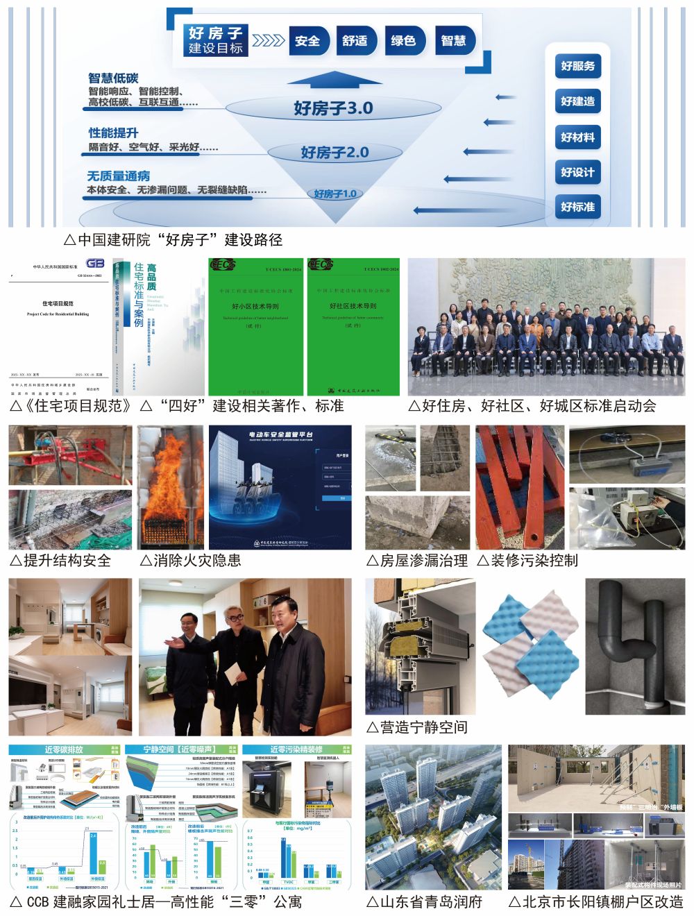 積極響應(yīng)“好房子”建設(shè)要求,提出了好房子1.0、2.0、3.0版的建設(shè)推進(jìn)路徑,在有效解決工程質(zhì)量通病的基礎(chǔ)上不斷迭代升級,最終實現(xiàn)安全、舒適、綠色、智慧的好房子建設(shè)目標(biāo)。主編了《住宅項目規(guī)范》,研發(fā)了好房子建設(shè)的關(guān)鍵技術(shù)和產(chǎn)品體系,有效提升結(jié)構(gòu)安全、消除火災(zāi)隱患、治理房屋滲透、控制裝修污染、營造寧靜空間,為CCB建融家園禮士居——高性能“三零”公寓、山東省青島潤府、北京長陽鎮(zhèn)棚戶區(qū)改造等重點項目提供有效的科技支撐。